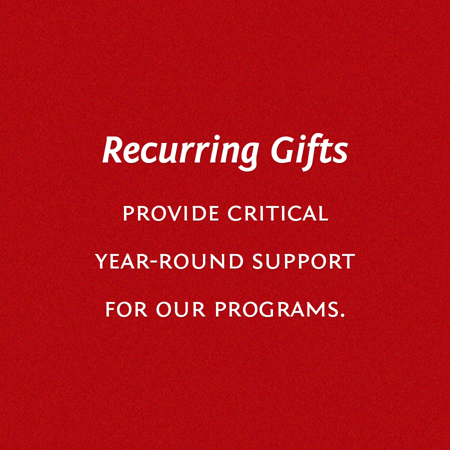 Your recurring gift helps stabilize our finances throughout the year in order to support our life-changing programs.
