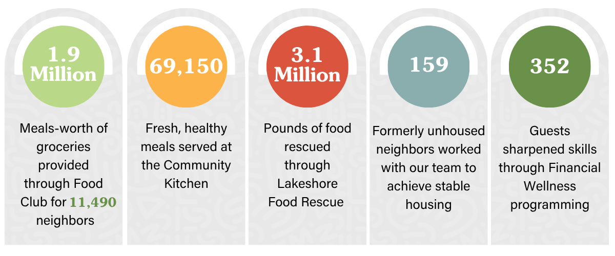 In our report, you’ll find stories from guests who walked alongside our team, read example after example of our community’s compassion, and see just how much our services have grown to meet rising needs. And while our programs have evolved, our purpose remains constant: no neighbor should face hardship alone. Change has shaped our work for more than five decades. We’ve navigated it by adapting as systems shift, staying rooted in our purpose, and doing the next right thing for our community—over and over—supported by neighbors like you.